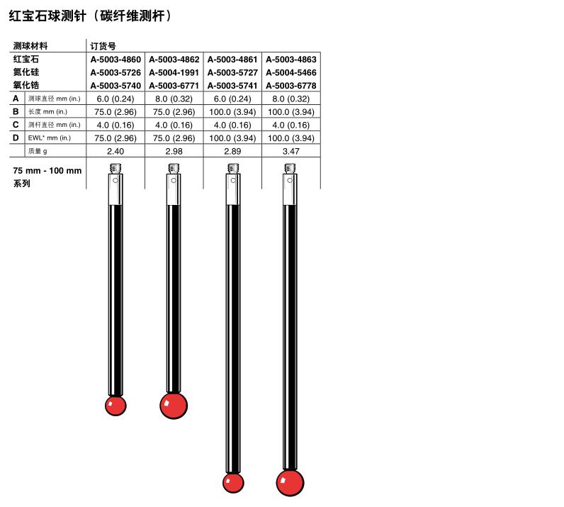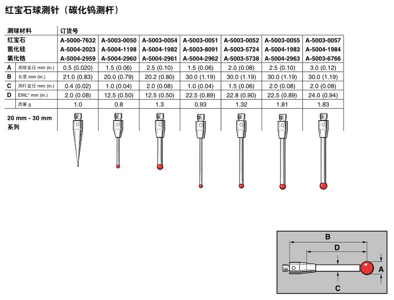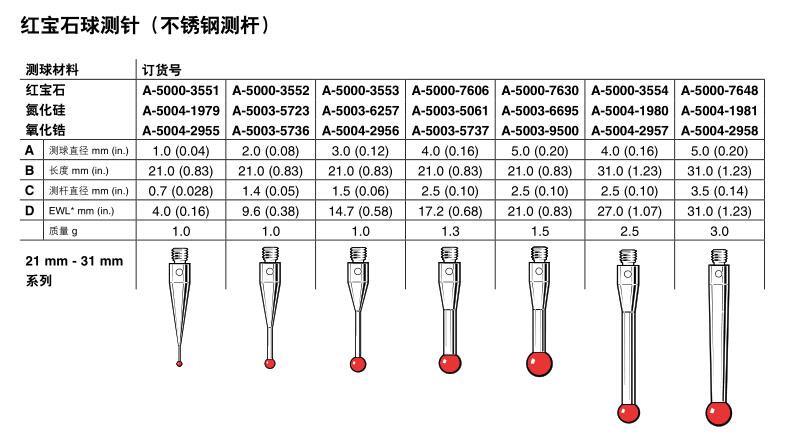 下列测头全部使用M3螺纹测针,但配备适当的转接头也可使用其他螺纹规格的测针