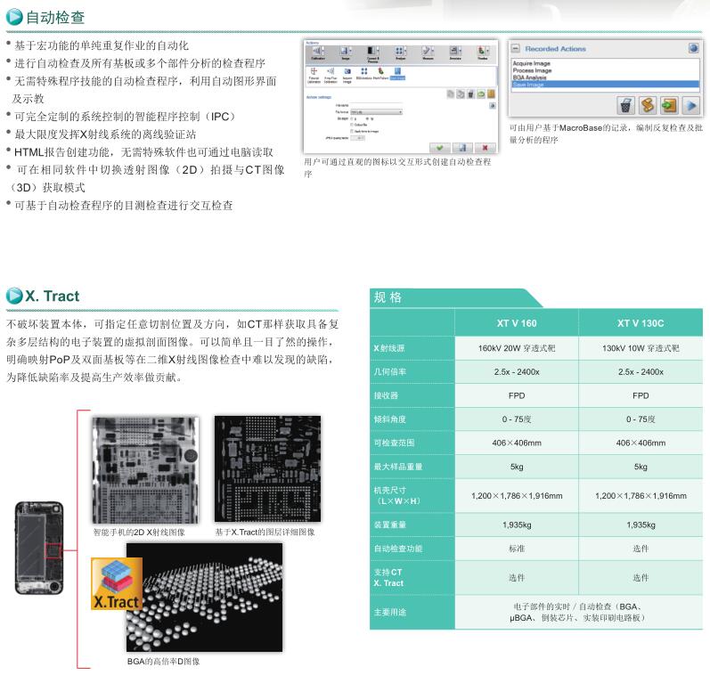 XTV160是专门面向生产线及故障分析部门开发的系统,根据客户的需要进行了性能优化,可选择高品质系统部件进行构建。不仅可手动进行实时检查,检查流程的完全自动化,也可提升生产效率。
